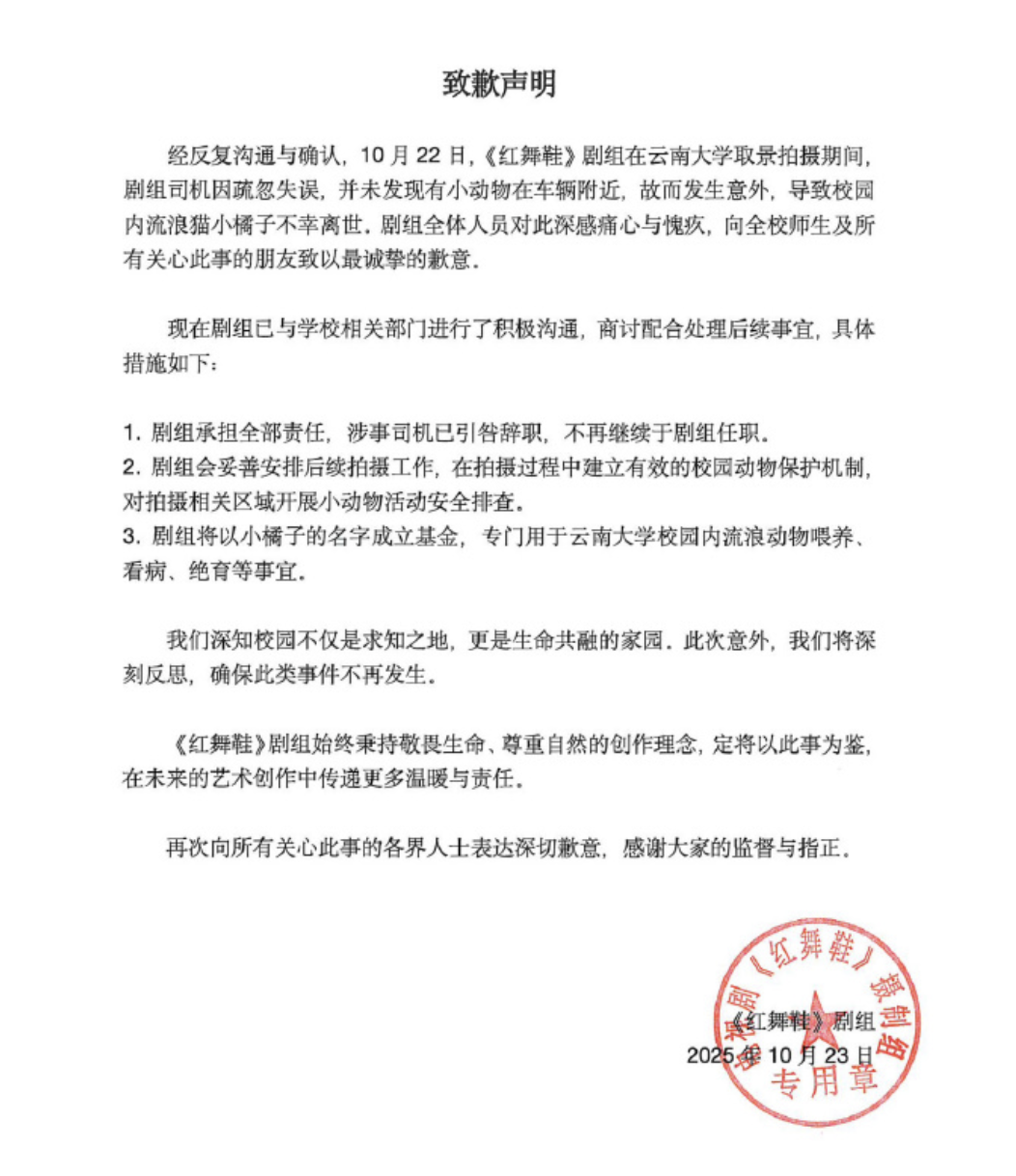 自从《红舞鞋》剧组司机在高校撞死小猫后,整个剧组一直被网友各种讨伐,尽管剧组发布道歉声明承诺会作出补偿,但有眼尖的网友发现,不知何时,剧组竟然悄悄将道歉信给删了,甚至司机还挑衅网友!